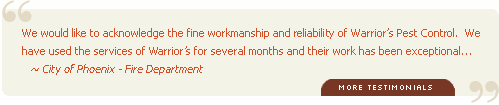 Warrior’s Pest Control provides pest and bird control services including birds, bees, gophers, rodents and bat removal to residential and commercial customers throughout Phoenix and surrounding areas.